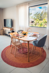 Ce penthouse vous offre une expérience de luxe en bord de mer avec vue sur le lagon. Il est niché à quelques mètres de la plage de la Côte Est de l’île, dans un quartier résidentiel calme. Il est situé au deuxième étage et se compose de 3 chambres, 2 salles de bains et une cuisine ouverte sur salon/salle à manger. Ce bien donne accès à un rooftop de 101.4m² avec une pisicne privative.